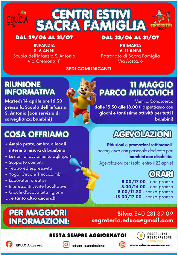 06.02.2026AvvisiBELLISSIME OPPORTUNITA’ PER I NOSTRI BAMBINI … e non solo … Compila il form: https://forms.gle/xdJNdNqvCpV9MHCq8Leggi di più -